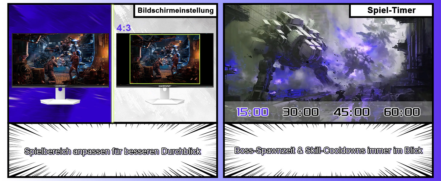 - [Adaptive Sync & 4 Bildoptimierer] Adaptive Sync Kompatibilität beenden Ruckeln und Tearing. 4 Modi (Standard/Kino/Energie/Büro/Spiel) passen Farben automatisch an – für optimale Sicht bei Tag/Nacht.