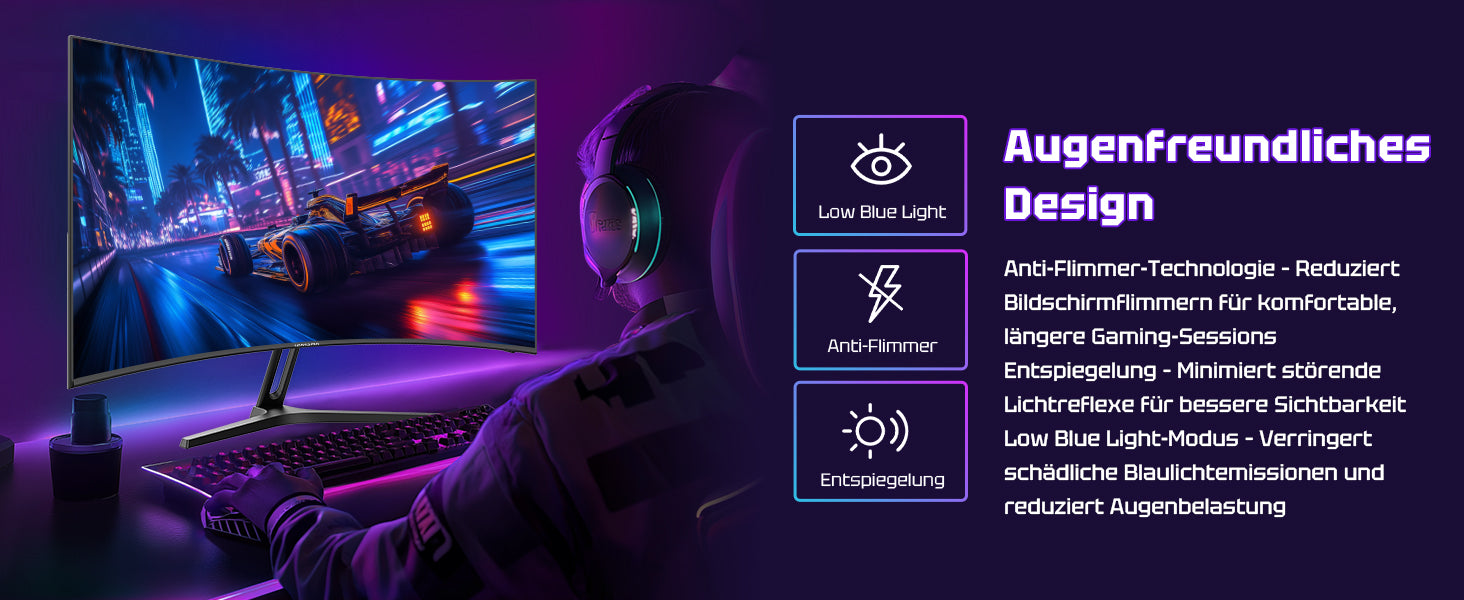 - Augenschonend bei langen Sessions: Blaulichtfilter und entspiegelte Oberfläche (Haze 25 %, 3H) reduzieren Augenbelastung bei langem Spielen oder Arbeiten.
