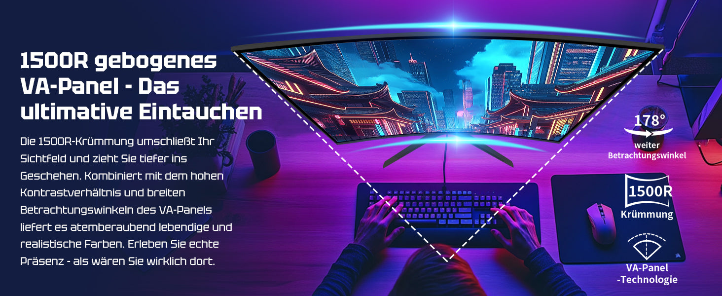 - Immersives Curved-Design: Erlebe ein fesselndes Seherlebnis mit dem 27-Zoll gebogenen Display (1500R-Krümmung) und FHD-Auflösung (1920 x 1080). Ein Kontrastverhältnis von 3000:1 und 178° Betrachtungswinkel sorgen für detailreiche und lebendige Bilder.