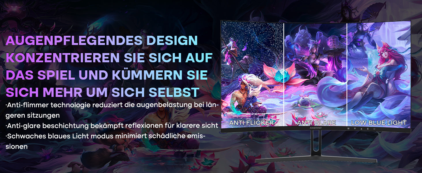 - [Verlängerte Visuelle Komfort] Mit Anti-Blaulicht-Technologie und Antireflektionsbeschichtung Reduziert Dieser Monitor die Augenmüdigkeit bei langen Gaming- oder Arbeitsessionen