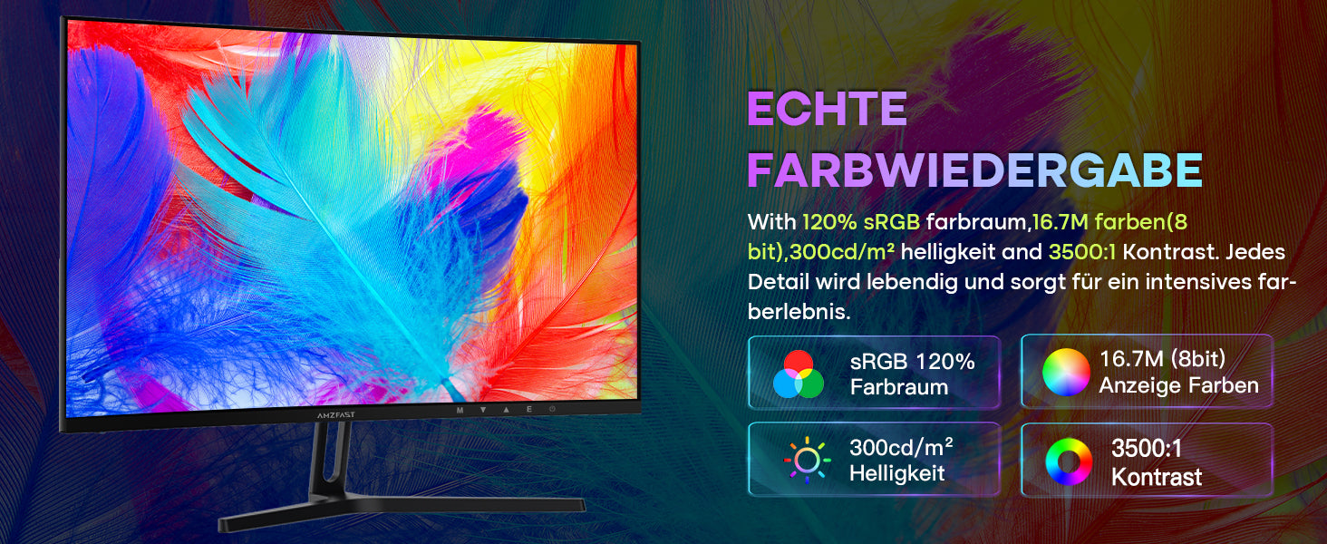 - [Lebendige Farben & Scharfe Details] Genießen Sie eine brillante Farbtreue (93% DCI-P3, 125% sRGB) mit 300 cd/m² und 3500:1 Kontrast für ein außergewöhnliches Bilderlebnis