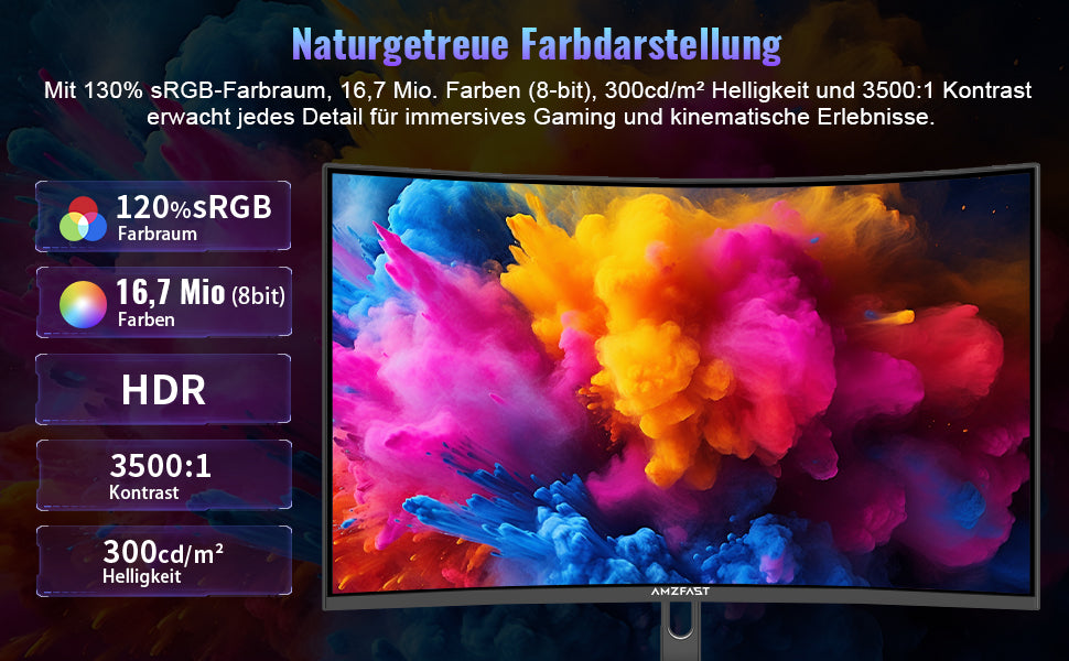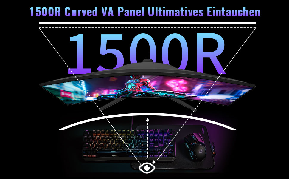 - Totale Immersion durch 1500R-Krümmung: Die 1500R-Krümmung und das leistungsstarke VA-Panel mit einem hohen Kontrastverhältnis von 3500:1 und reichen Farben bieten ein umfassendes visuelles Erlebnis für Spiele und Filme.
