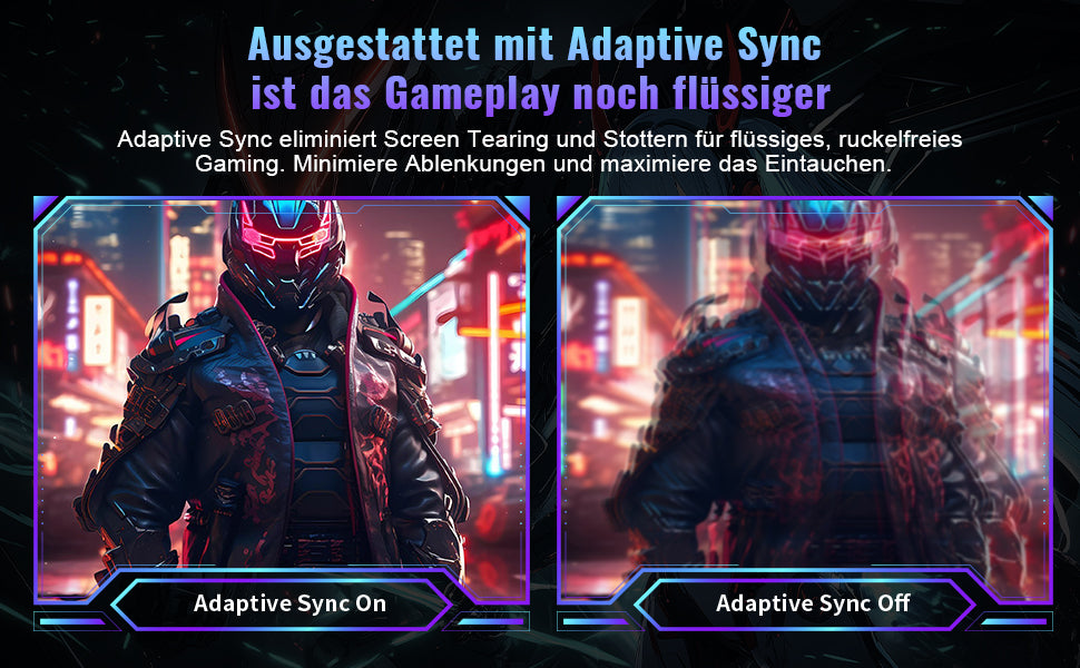 - HDR 10 und AMD FreeSync: Unterstützt HDR 10 für eine bessere Farbwiedergabe und Kontrasttiefe. AMD FreeSync-Technologie beseitigt Bildriss und -stottern, um ein reibungsloses Gaming-Erlebnis zu gewährleisten.