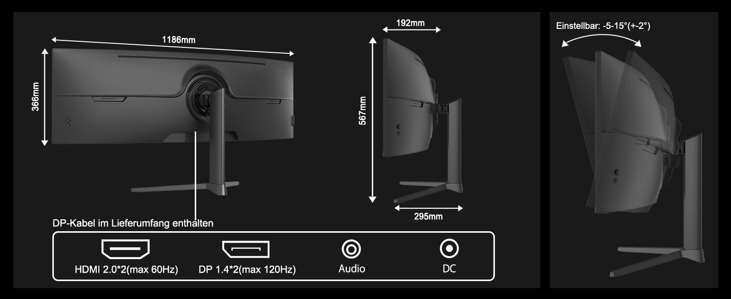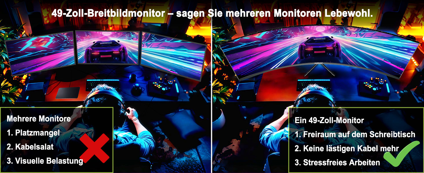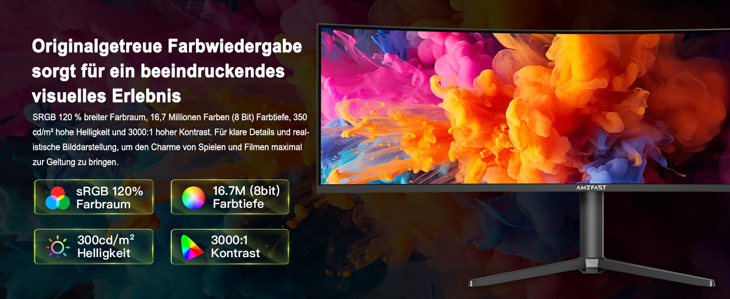 - Auflösung und Bildqualität: Doppelt QHD(5120*1440) Auflösung, 120% sRGB, 3000:1 Kontrast und 350 cd/m² Helligkeit, Zusätzlich mit HDR-Technologie.Erleben Sie Lebendige Bilder und Brillante Farben.