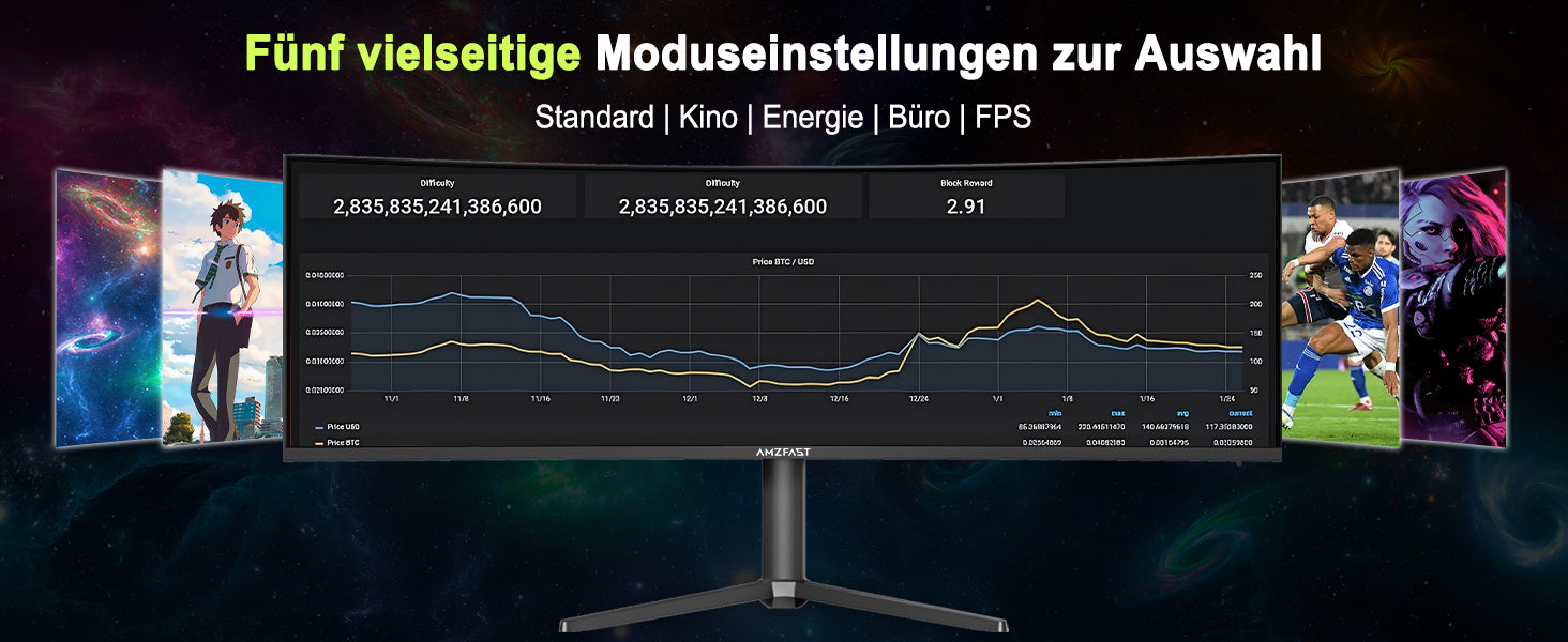 - Curved und Eye-Friendly Design: Curved Design: 49-Zoll-Monitor mit einer Krümmung von 1500R, die dem Sichtfeld Entspricht, Sowie einem Augenschutzmodus und einer Flimmerfreien Technologie. Arbeiten Sie mit einem Angenehmen Seherlebnis.