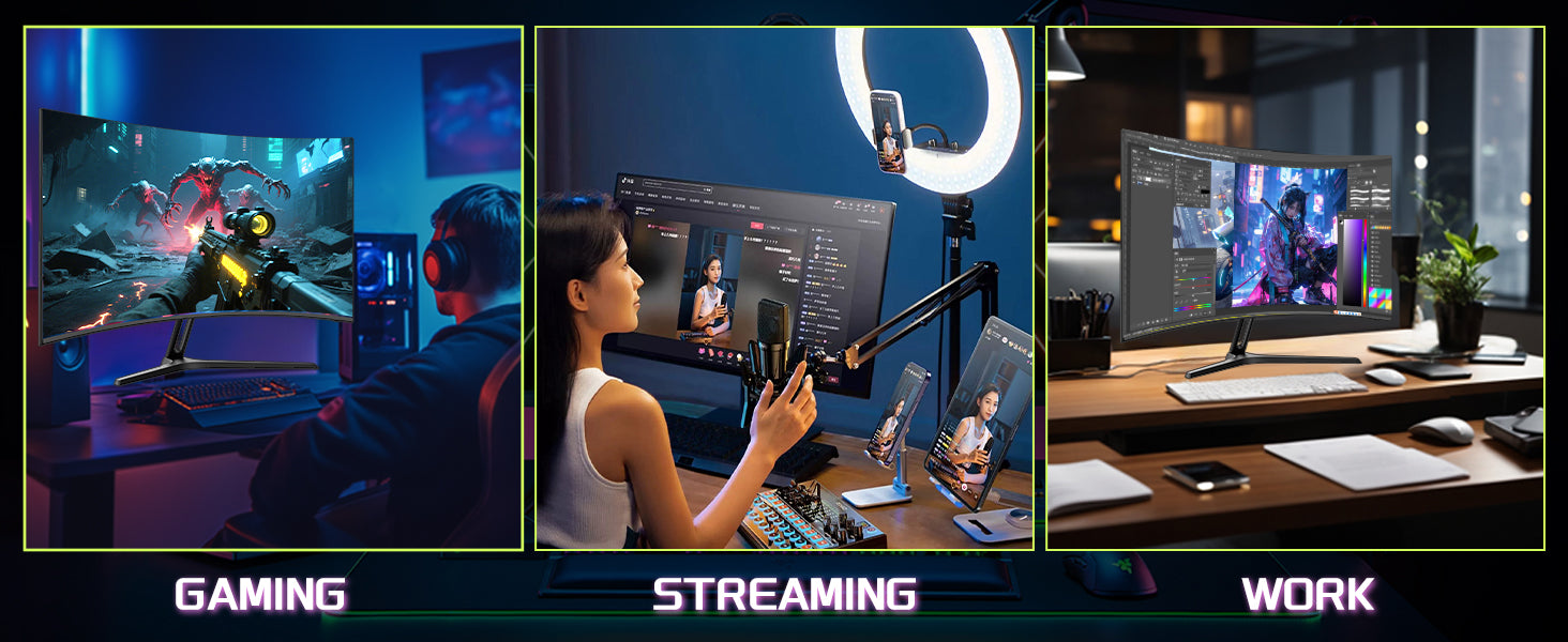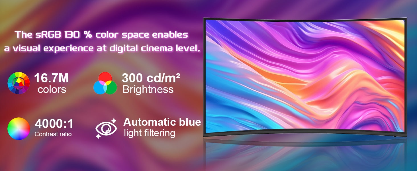 1500R curved + ultra-slim borders: Immersive 1500R curved display with narrow edges for an enveloping field of view - ideal for multi-monitor setups and immersive gaming experiences.