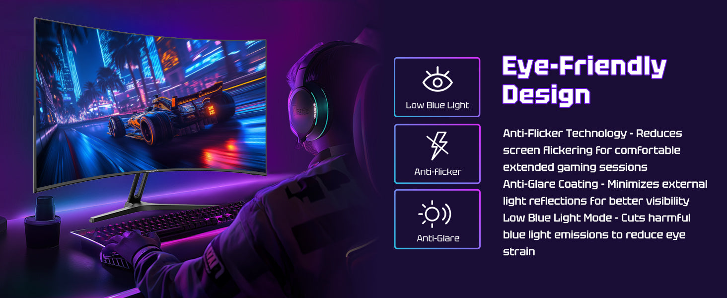 - Tear-Free Adaptive Sync:AMD FreeSync technology eliminates screen tearing and stuttering, while anti-flicker and low blue light keep your eyes comfortable during marathon gaming sessions.