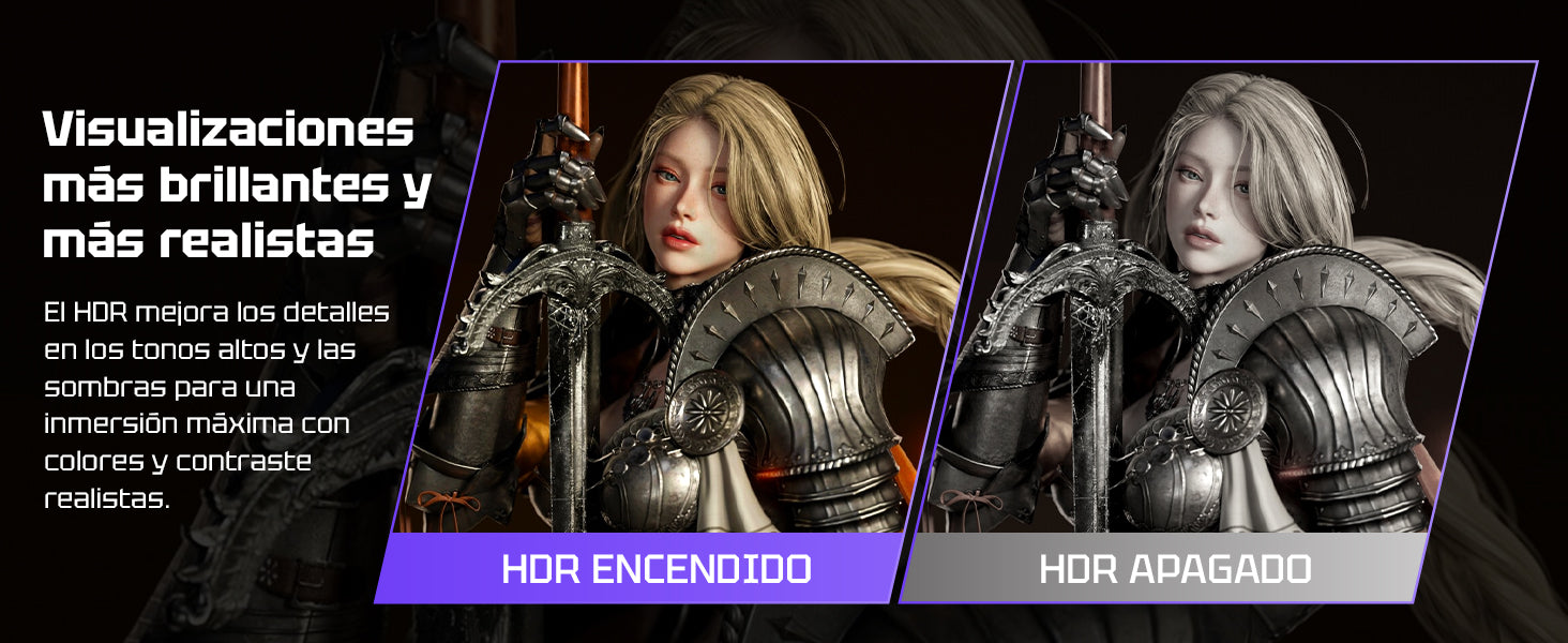 Precisión de color cinematográfica: Experimenta imágenes de calidad hollywoodense con una cobertura del 130 % de sRGB y del 95 % de DCI-P3. La relación de contraste de 4000:1 revela sutiles detalles en las sombras, mientras que la compatibilidad con HDR crea una profundidad impresionante en cada escena.
