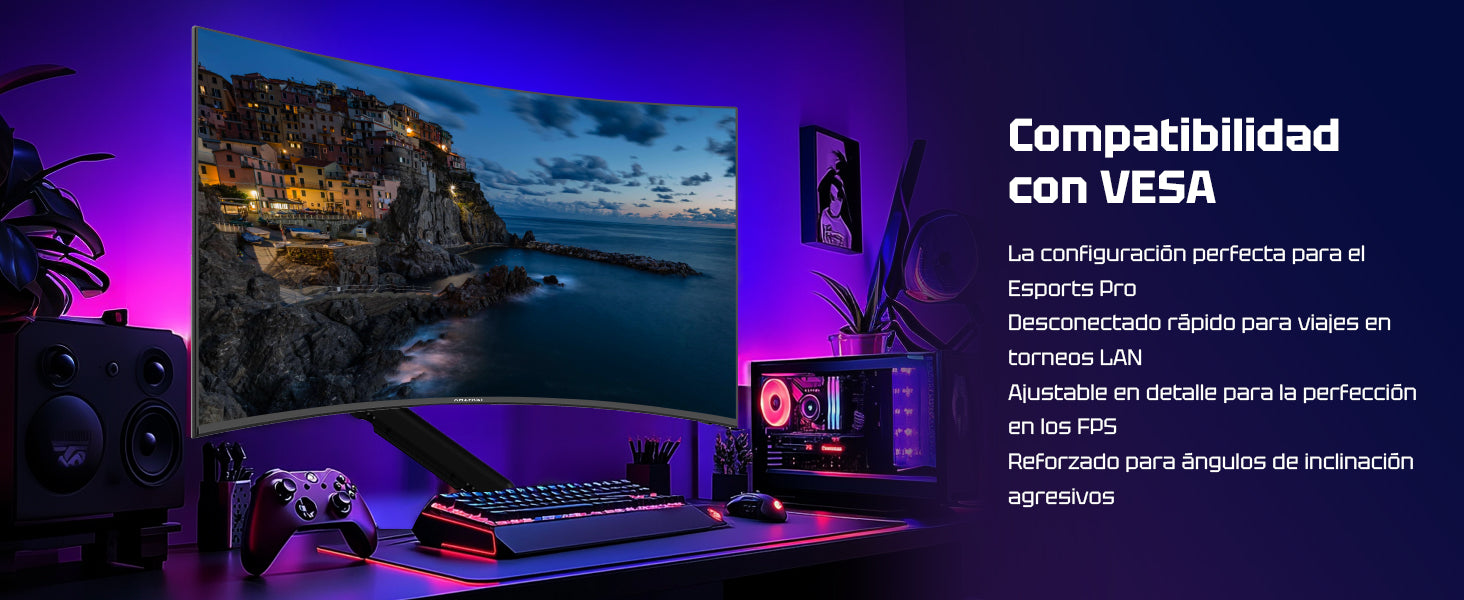 Listo para la estación de batalla optimizada: Con montaje VESA universal de 100 x 100 mm y conectividad premium (HDMI 2.0 + DisplayPort), este monitor para esports de 240 Hz se integra a la perfección en cualquier configuración de juego, además de ofrecer un ajuste ergonómico de inclinación.