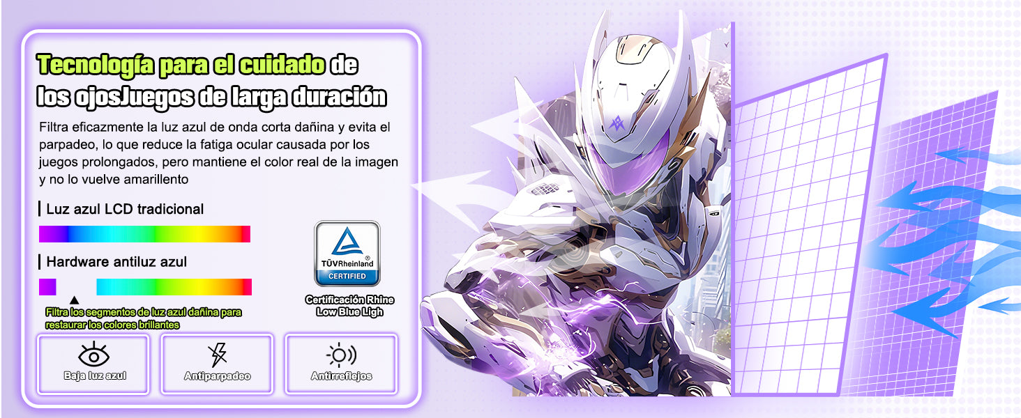 - [95 % de color táctico DCI-P3] La cobertura sRGB del 130 % garantiza una distinción de color por capas para los efectos de habilidades y los elementos de la interfaz. Identifica rápidamente las señales visuales clave durante batallas caóticas.