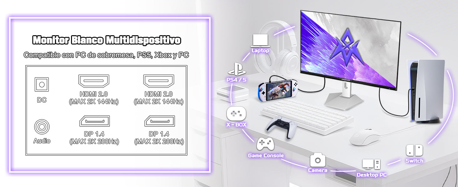 - [Conectividad versátil] Los puertos HDMI 2.0×2 + DP 1.4×2 (compatibles con 200 Hz) son compatibles con PC, consola y portátil. Incluye cables DP y HDMI para una configuración plug-and-play instantánea.