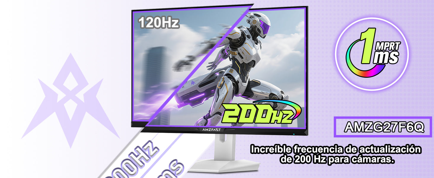 - [Frecuencia de actualización Fluido 200Hz] Experimenta una jugabilidad ultrafluida con un panel IPS QHD de 27" y frecuencia de actualización de 200Hz. Ofrece transiciones de fotogramas 3 veces más rápidas que las pantallas estándar de 60Hz, eliminando retrasos de entrada para un control preciso del cursor y ejecución hábil en escenas competitivas.
