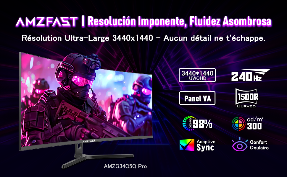 ALTA RESOLUCIÓN Y RÁPIDA VELOCIDAD: Con una gran pantalla de 34", una alta resolución de 3440x1440 y una rápida frecuencia de actualización de 240 Hz para una experiencia de juego fluida.