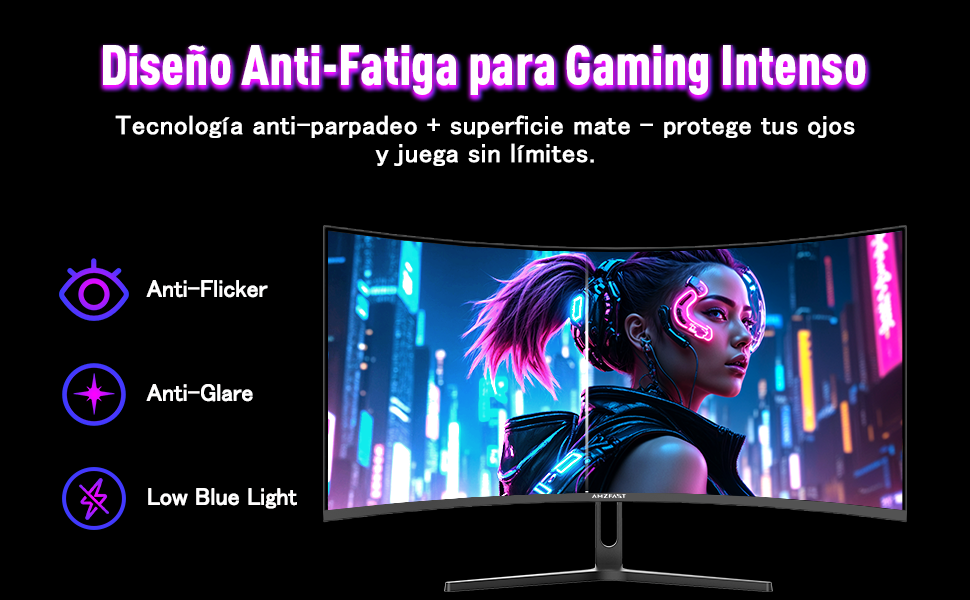 PANEL VA Y DISEÑO CURVO: Adopta un panel VA, una relación de aspecto de 21:9 y un diseño curvo para una experiencia de juego inmersiva.