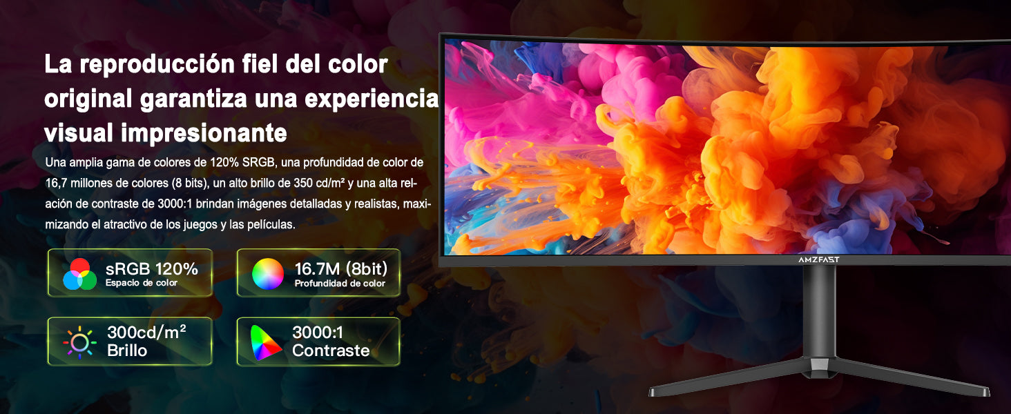 - Colores vívidos y brillantes: 350 nits de brillo y cobertura de gama de colores sRGB del 120 %, con 16,7 millones de colores, brindan imágenes vívidas y detalladas, perfectas para jugadores y creadores de contenido.