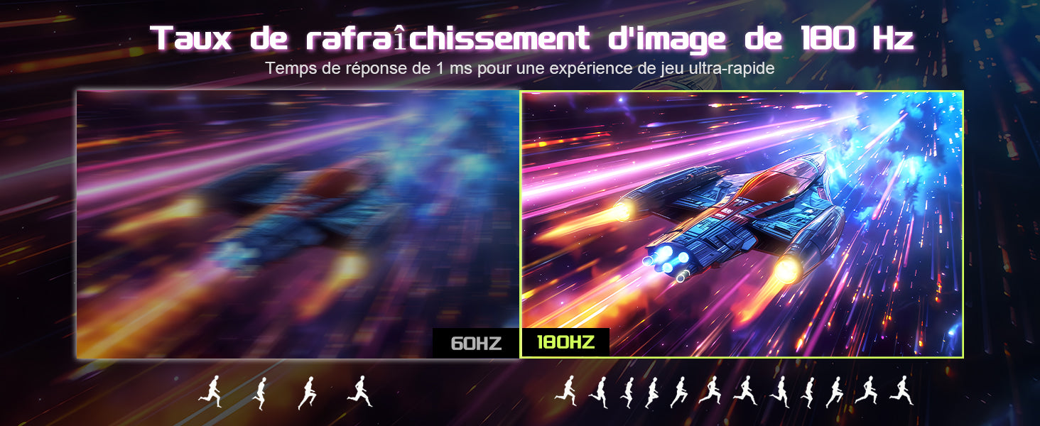 180 Hz + 1 ms MPRT + AMD FreeSync Premium : Performances e-sport professionnelles avec un taux de rafraîchissement de 180 Hz et un temps de réponse de 1 ms. AMD FreeSync Premium élimine les saccades et les déchirures d'image pour une expérience de jeu compétitive dans CS:GO, Valorant et Fortnite.