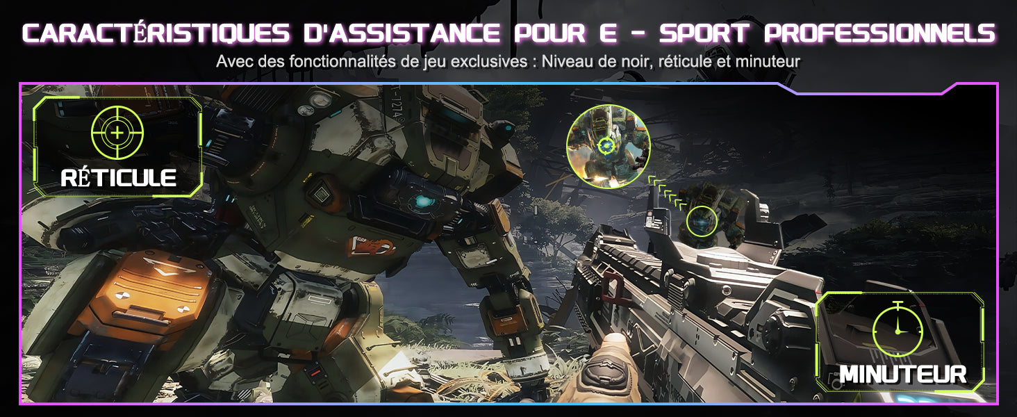 95 % DCI-P3 + 130 % sRGB + Contraste 3000:1 : Précision des couleurs compatible avec les tournois avec 95 % DCI-P3 et 130 % sRGB ; visibilité parfaite dans les environnements e-sport sombres grâce au rapport de contraste de 3000:1.