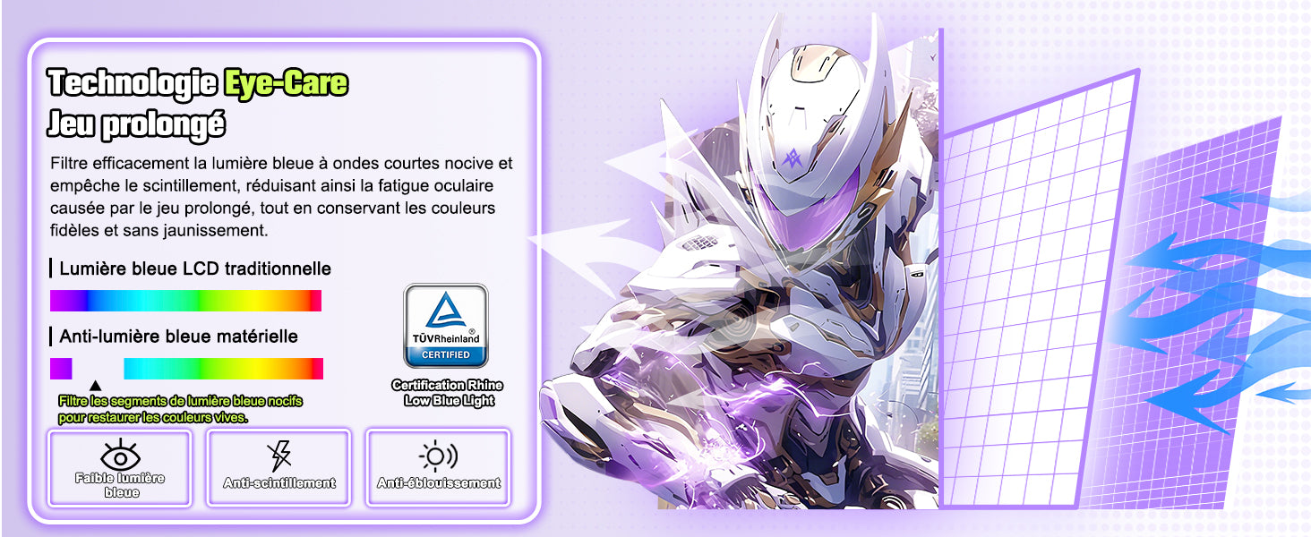 - [95 % de couleurs tactiques DCI-P3] La couverture sRGB de 130 % assure une distinction des couleurs par couches pour les effets de compétences et les éléments d'interface. Identifiez rapidement les repères visuels critiques lors d'affrontements chaotiques.