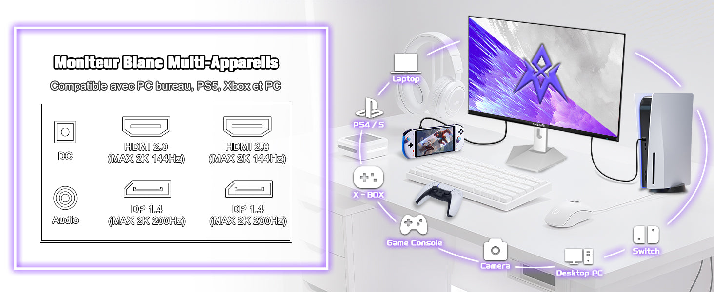 - [Taux de Rafraîchissement Fluide de 200Hz] Écran IPS QHD de 27 Pouces avec un taux de Rafraîchissement de 200Hz Élimine le Décalage D'entrée, Permettant un Contrôle Précis du Curseur et une Exécution des Compétences dans des Scénarios Compétitifs, Offrant une Expérience de jeu Fluide.