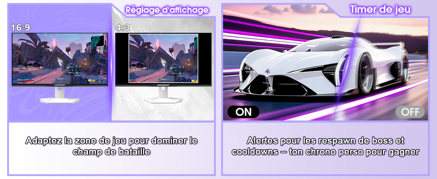 - [Réponse MPRT 1 ms] La Technologie OverDrive Offre une Réponse Gris à Gris de 1ms, Combinée à la Réduction du flou de Mouvement MPRT et à la Synchronisation Adaptative. Elle Élimine les Images Fantômes lors des Virages Rapides, Garantissant une Acquisition de Cible D'une Netteté Exceptionnelle.
