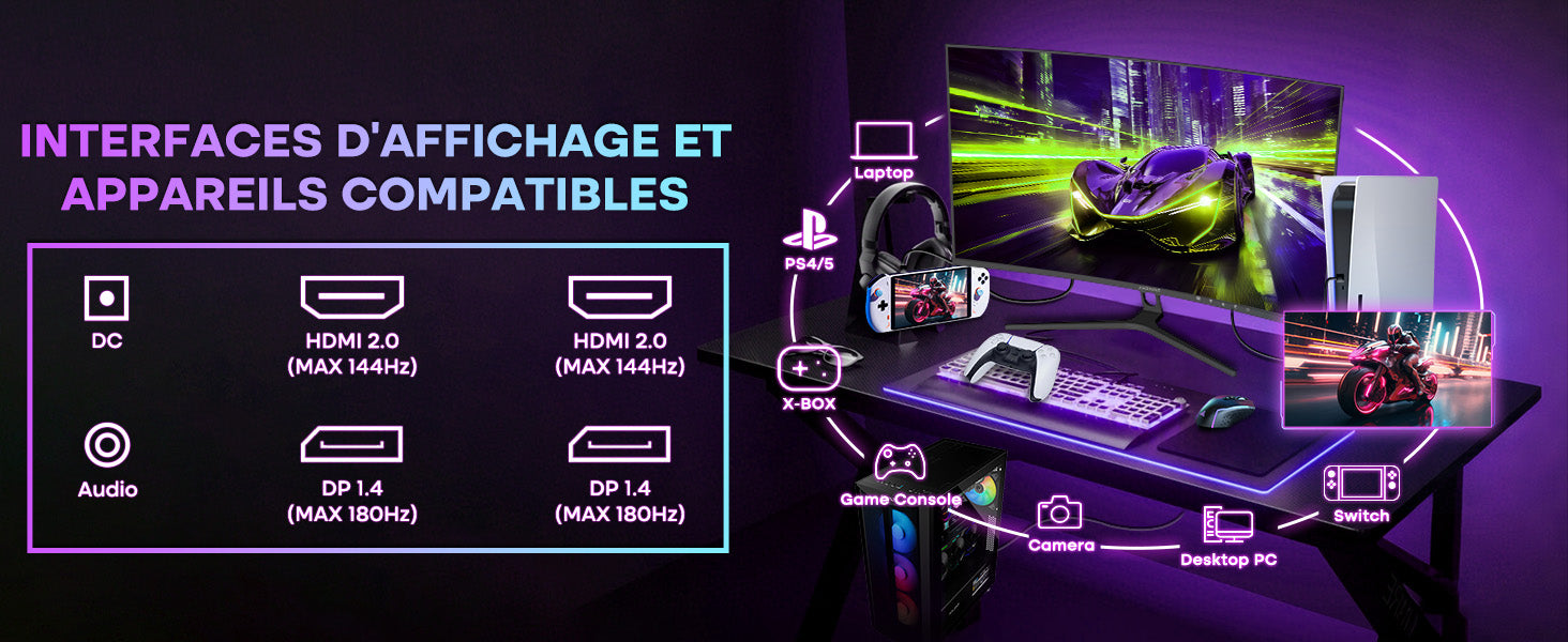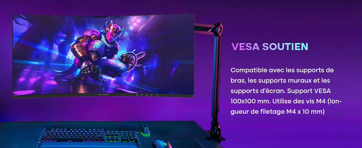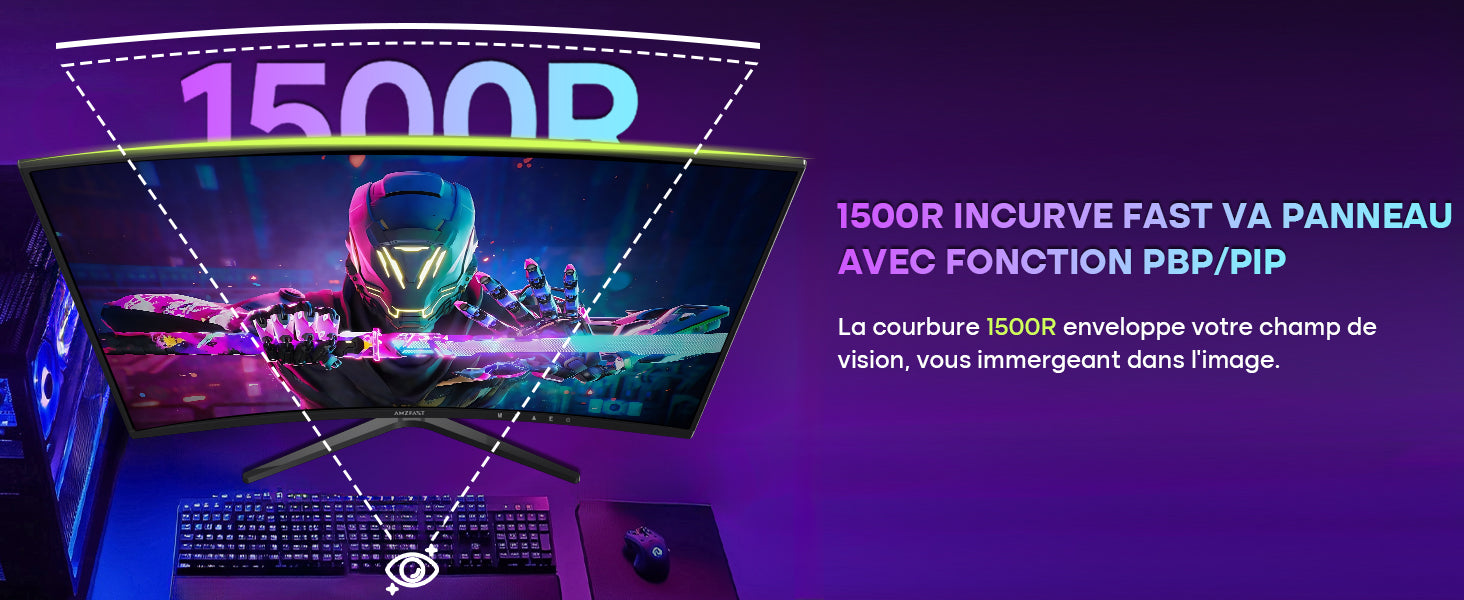 - Immersion Totale avec Courbure 1500R: Profitez d'une Expérience Visuelle Enveloppante Grâce à la Courbure 1500R et au Panneau VA haute Performance, Offrant un Contraste élevé de 3500:1 et des Couleurs Riches pour les jeux et les Films.