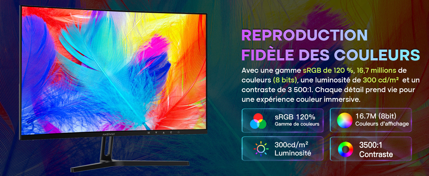 - Couleurs Précises et Vibrantes: Ce Moniteur couvre 90% de l'espace Colorimétrique DCI-P3 et 120% du sRGB, Restituant des Couleurs Fidèles et des Détails nets, Parfaits pour les Joueurs et les Créateurs de Contenu