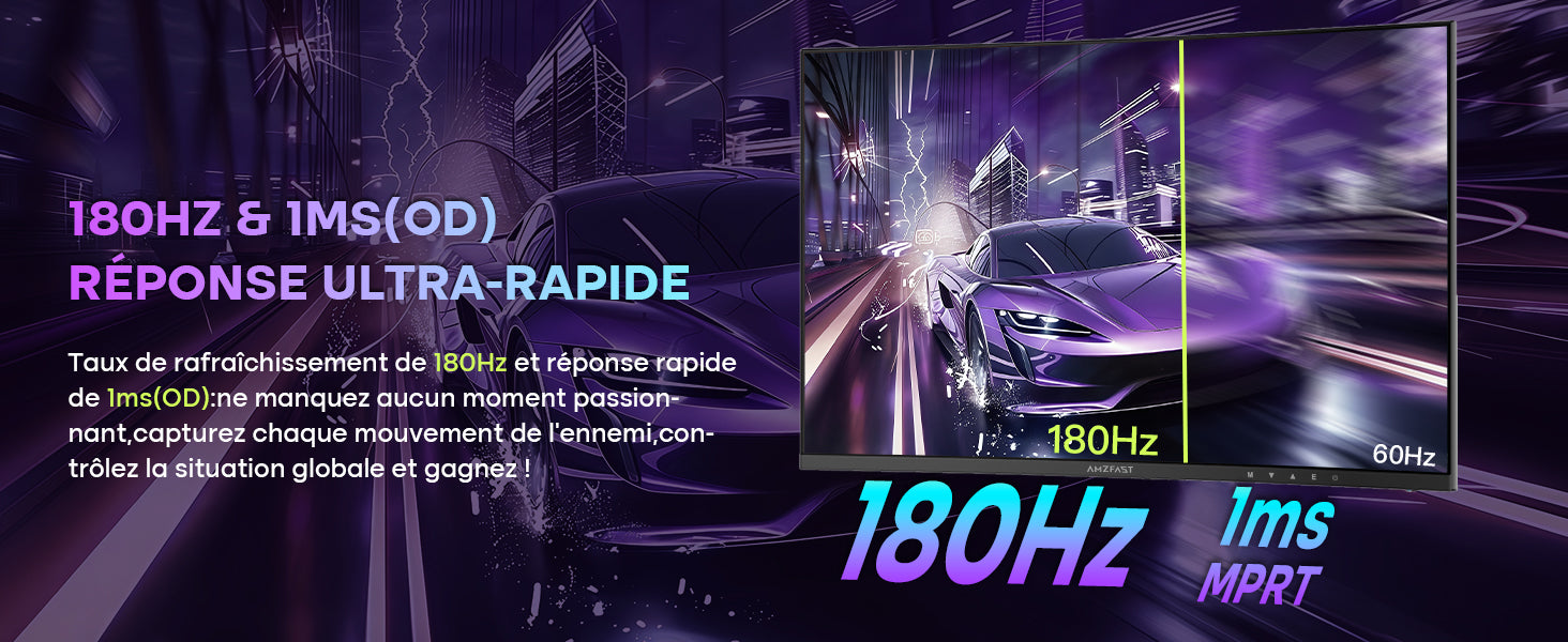 - Performance Gaming Haute Définition: Avec un taux de Rafraîchissement de 180Hz et un Temps de Réponse de 1ms MPRT, ce Moniteur Offre des Images Fluides et Réactives, Idéales pour les jeux Compétitifs. La Technologie Adaptive Sync élimine les Saccades et les Déchirures D'écran pour une Expérience de jeu Immersive.