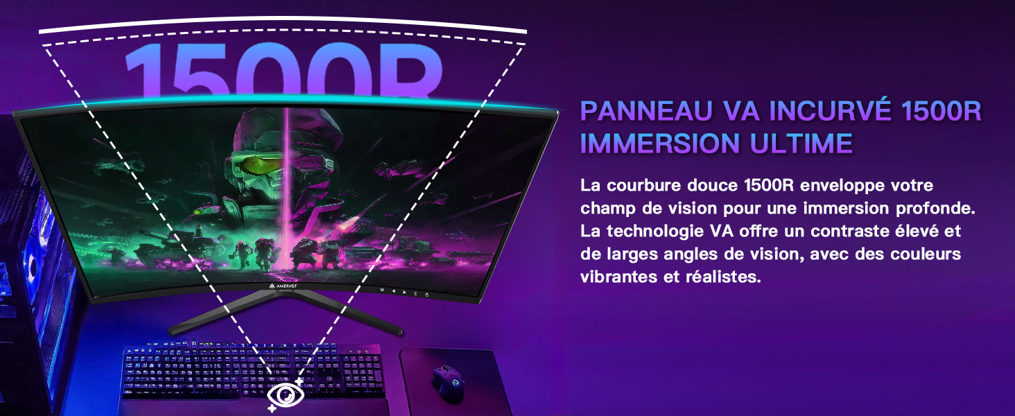 - Immersion Totale avec Courbure 1500R: Profitez d'une expérience visuelle enveloppante grâce à la courbure 1500R et au panneau VA haute performance, offrant un contraste élevé de 3500:1 et des couleurs riches pour les jeux et les films.