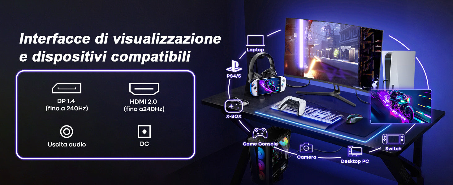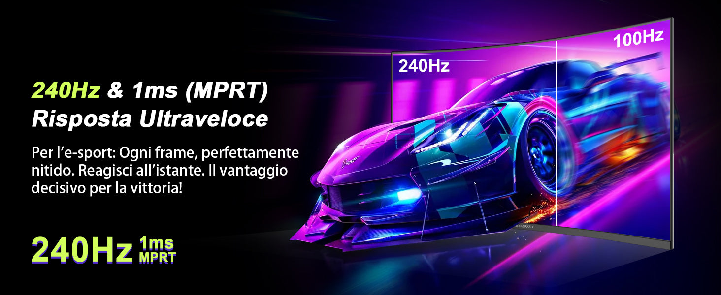 - [240Hz e 1ms MPRT] Offre immagini fluide e reattive, ideali per i giochi competitivi. La tecnologia Adaptive Sync elimina tearing e stuttering per un'esperienza di gioco immersiva.