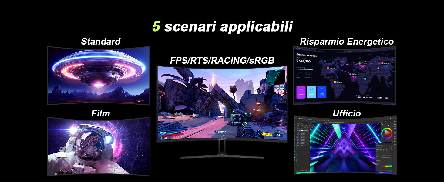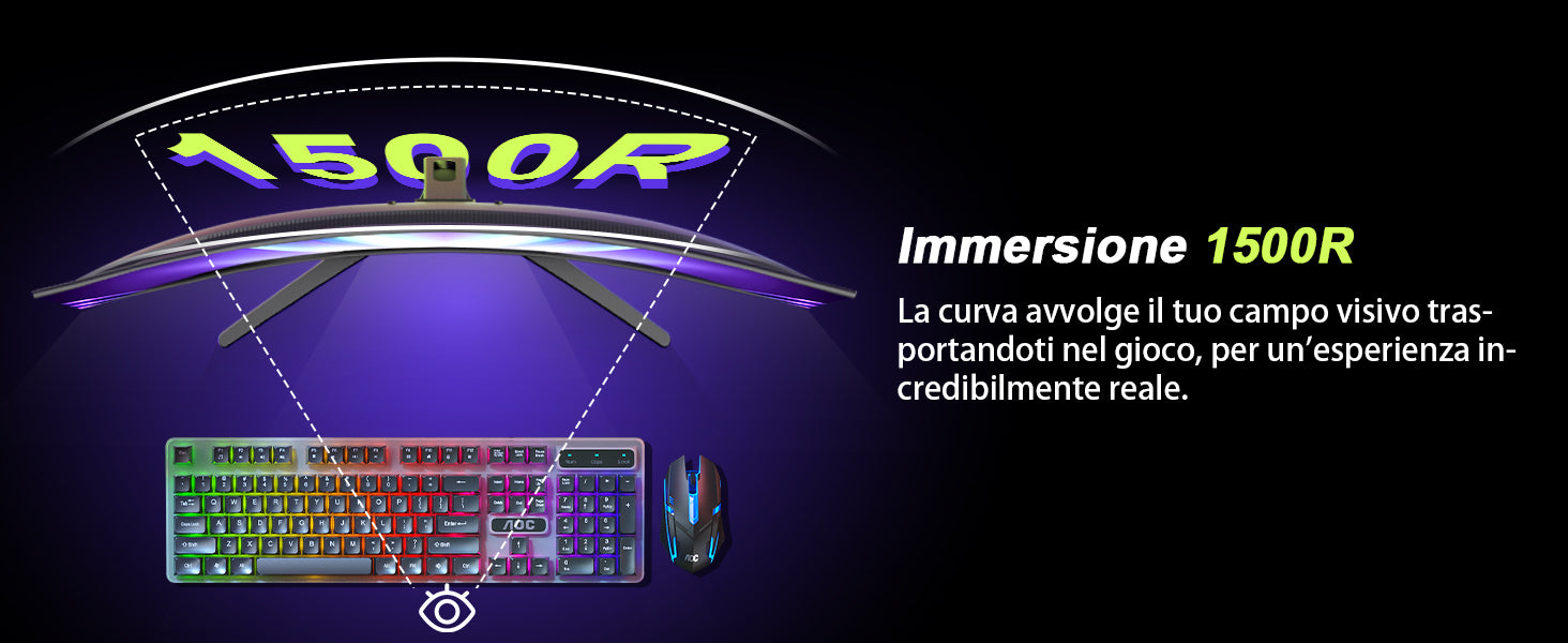- [Schermo curvo 1500R] Grazie alla regolazione dell'inclinazione da -5° a 15° (+/-2°), goditi un'esperienza visiva immersiva, perfetta per giochi e film.