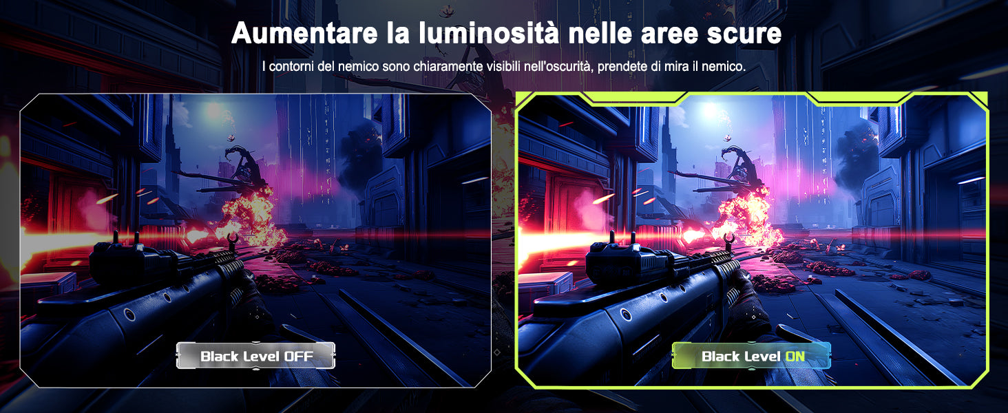 - Esperienza di gioco senza pari: frequenza di aggiornamento di 120 Hz e tempo di risposta MPRT di 1 ms offrono prestazioni competitive eccezionali. La tecnologia Adaptive-Sync elimina tearing e stuttering dello schermo.