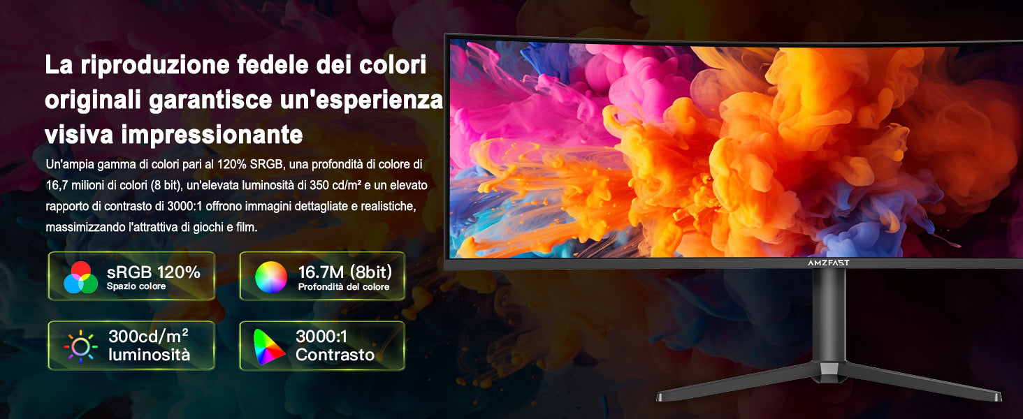 - Colori vividi e brillanti: 350 nit di luminosità e copertura della gamma cromatica sRGB del 120%, con 16,7 milioni di colori, offrono immagini vivide e dettagliate, perfette per giocatori e creatori di contenuti.